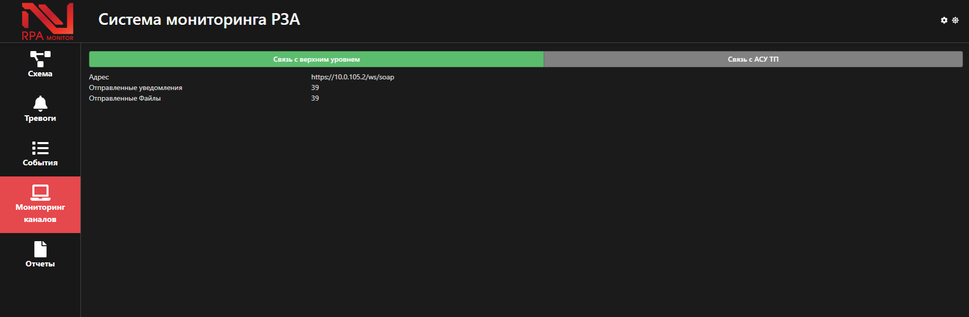 - мониторинг каналов связи с верхним уровнем АСМ или с диспетчерскими центрами АО «СО ЕЭС»;