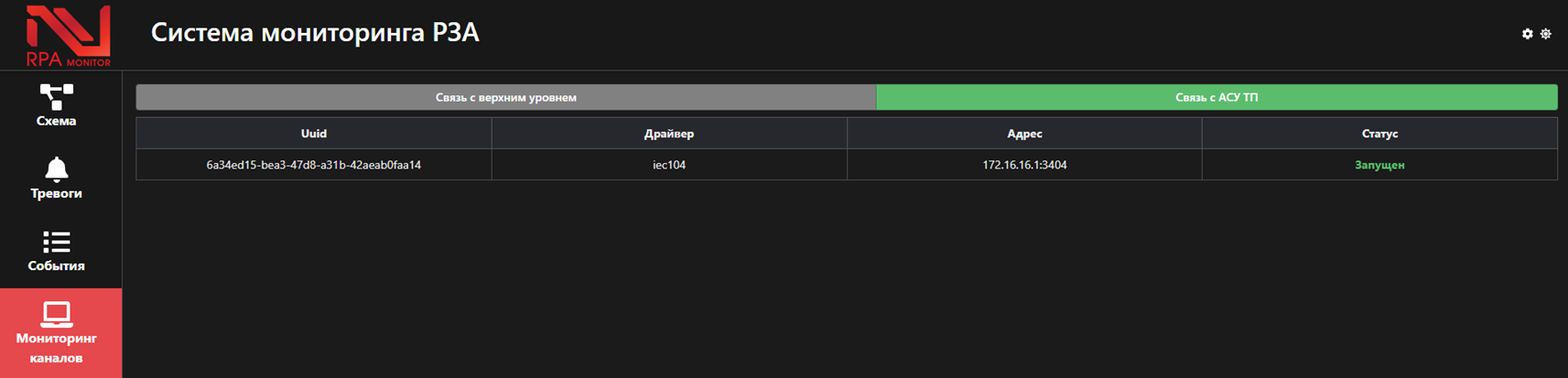 NPT RPA Monitor - автоматизированная система мониторинга релейной защиты и автоматики электрических подстанций NPT RPA Monitor (АСМ РЗА) – (далее - NPT RPA Monitor) предназначена для постоянного мониторинга состояния устройств и комплексов РЗА, АСУ ТП, средств измерений, выполнения связанных с их функционированием расчетно-аналитических задач, а также для передачи данных мониторинга на верхний уровень АСМ и в диспетчерские центры АО «СО ЕЭС» по протоколу ССНТИ согласно ГОСТ Р 59550-2021 "Единая энергетическая система и изолированно работающие энергосистемы. Релейная защита и автоматика. СБОР, ХРАНЕНИЕ И ПЕРЕДАЧА В ДИСПЕТЧЕРСКИЕ ЦЕНТРЫ В АВТОМАТИЧЕСКОМ РЕЖИМЕ ФАЙЛОВ С ДАННЫМИ РЕГИСТРАЦИИ АВАРИЙНЫХ СОБЫТИЙ".